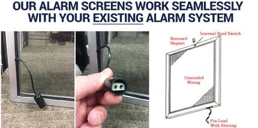 TOP REASONS WHY YOU NEED ALARM SCREENS TODAY! Our high quality alarm screens for your home or office windows and doors allow you to keep them wide open at night while keeping intruders out! Contact us today for more information and a FREE estimate.