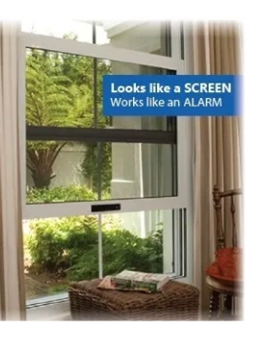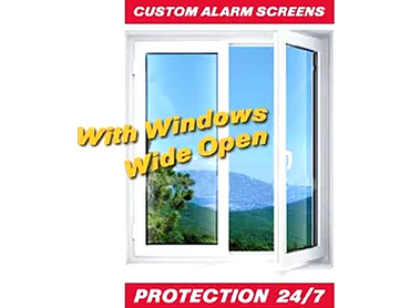 ALARM SCREENS offer burglar protection with the windows open or closed and do not interfere with popular window treatments.
